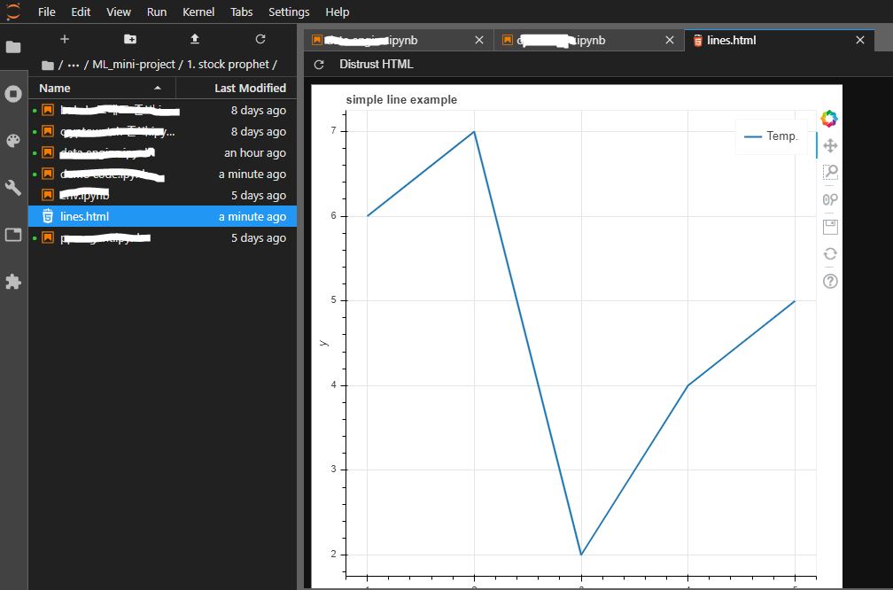 위 코드를 실행하면 HTML 파일이 만들어지고 브라우저 탭이 생기며 그래프를 볼 수 있다. 물론, jupyterlab 은 html 파일을 볼 수 있는 기능을 지원하므로 jupyterlab 에서 탭을 만들어 그래프를 확인할 수 있다.