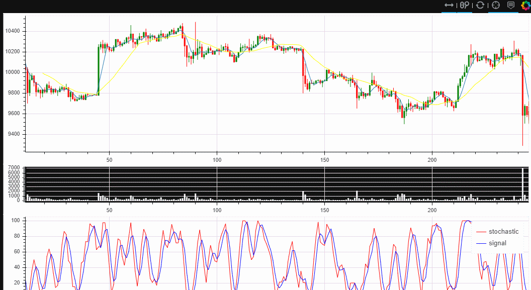 나는 주식에 대한 관심이 많아서 캔들차트, 이동평균선을 비롯한 여러가지 지표를 직접 그려보았다. 주식데이터는 따로 데이터를 크롤링했다. 이 그래프는 jupyter 에서 구동한 것을 움짤로 만든것이다.